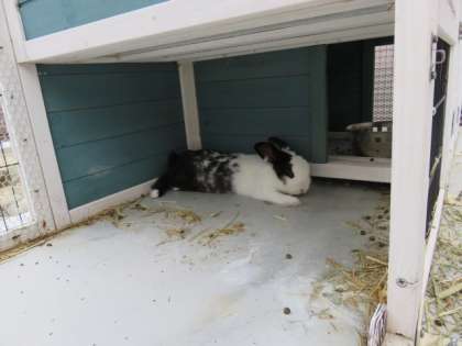 オレオ(ウサギ)は暑さに負けてへばっていますが、子どもたちは暑さに負けずにがんばっています。