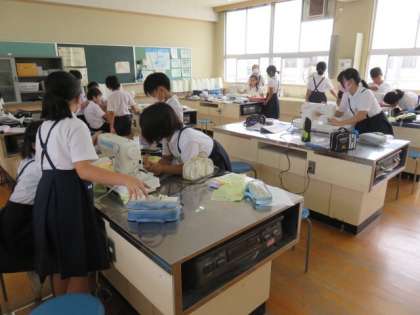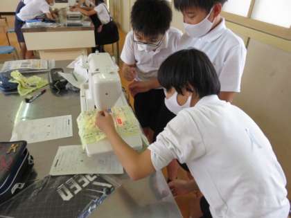 ミシンは糸をかけていく順番や針の取り付け方など覚えることが多いですが、一つひとつ丁寧に進めていました。