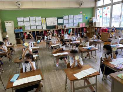 模型時計を操作し、「なんじ」「なんじはん」のよみ方を学習しました。