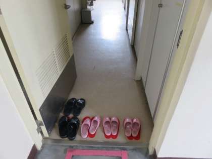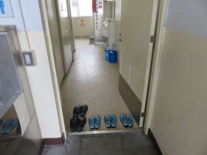 2年生教室横のトイレの様子です。スリッパがきれいにそろっています。