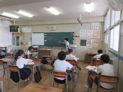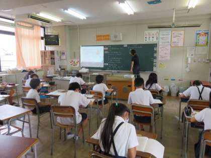 比の学習でした。子どもたちは自分でめあてを設定したり、見通しを持ったりすることができます。それぞれの考え方もわかりやすく「式を使う。」「図を使う。」「数直線にする。」