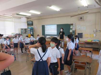 今回も集会委員会のお手本ビデオを教室で見てからゲームを行います。