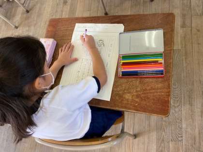 みんなが書いた絵日記もにっこりと笑っている自分や友達を描いていました。