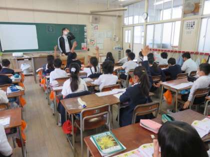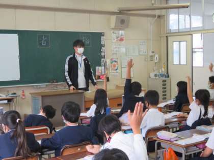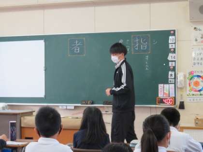 今日は漢字の指導をしていました。読み方や書き順、部首に至るまで丁寧に進めていました。子どもたちとの信頼関係もでき、前に立つもの慣れてきたようです。
