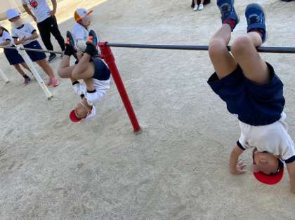 逆さになる感覚が怖いと言っていた子も、ゆっくりと丁寧に挑戦する姿がありました。