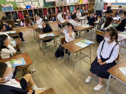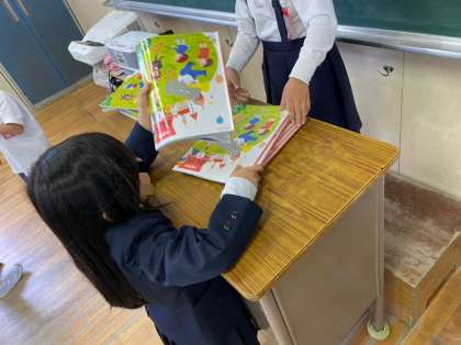 授業後は、集めたみんなの教科書の向きをそろえてあげる姿もありました。