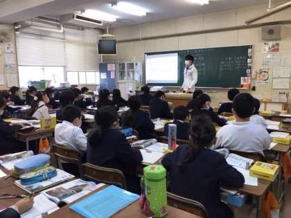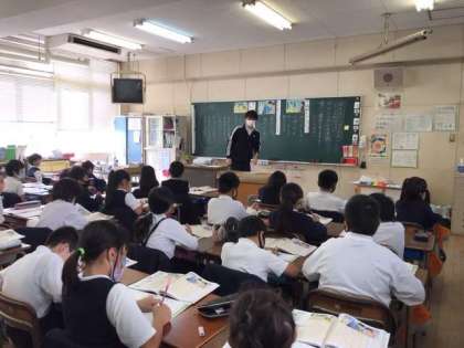 実習生が授業をしているところです。道徳の授業では、掲示物を作ってきて、子ども達が考えやすいように工夫していました。活動の様子を確認しながら、丁寧に指導しています。