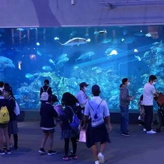気持ちよく大きな水槽をおよぐ魚たちに見とれています。