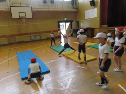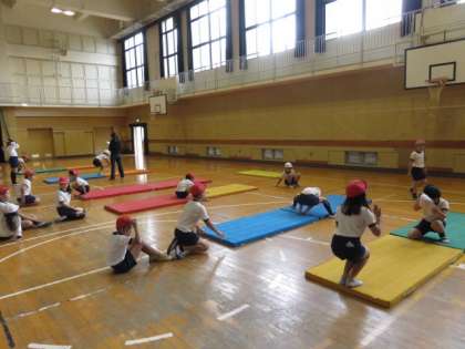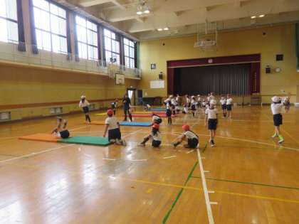 3年生 マット運動です。練習を重ねて以前よりも上達していました。