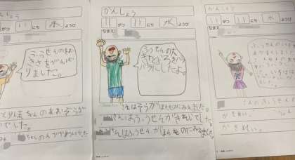 風船の大きさや、人の服や表情など、それぞれの細かな工夫や良さもよく見つけることができていました。