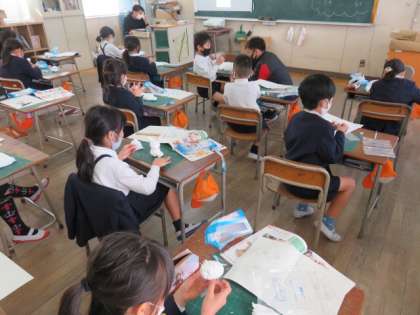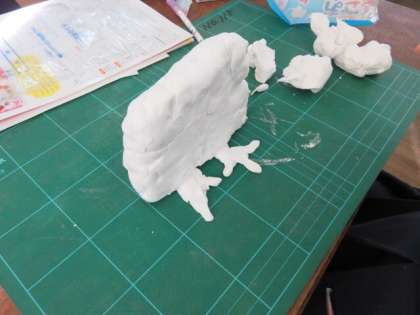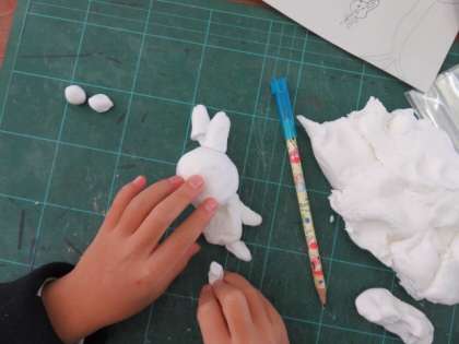 図画工作科、紙粘土で動物を作っていました。