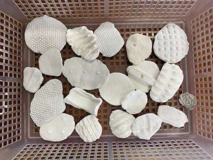と、紙粘土を押し付けて、いろいろな形を集めることができていました。