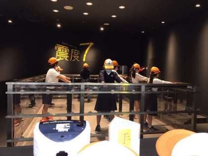 震度7の地震体験をしたり、映像を見たり、説明を聞いたりしながら学習しました。