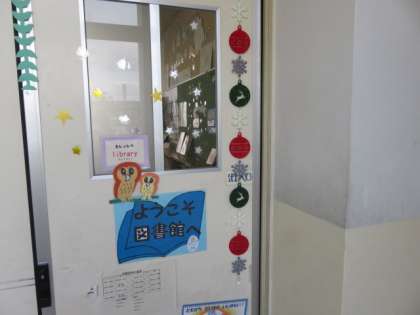 毎週金曜日来ていただいている図書館補助員さんが季節に応じた飾りつけをしてくださっています。クリスマスの雰囲気が出ています。