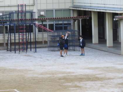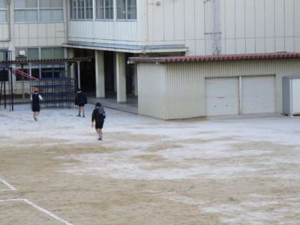 念願が叶ったのか?運動場にはうっすらと白い雪が…。