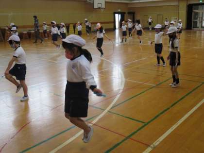 本年度は密を避けるため、全体でのなわとびは行わず、体育の授業はじめに15分程度行うことになりました。