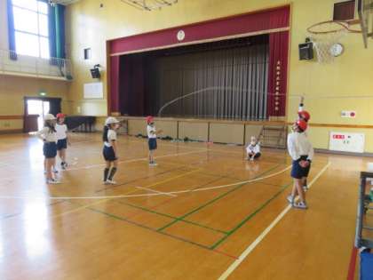 なわとび、大なわとび、体全体をつかったじゃんけんなど、次々と体を動かして体力を高める運動をしました。