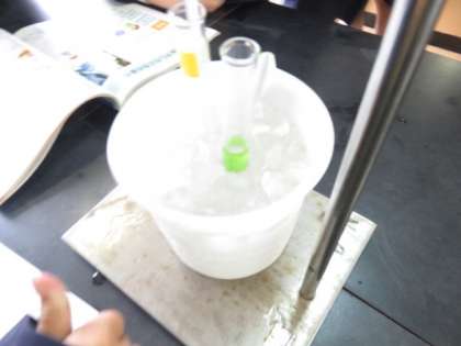 水を氷で徐々に冷やしていったときの変化について実験しました。