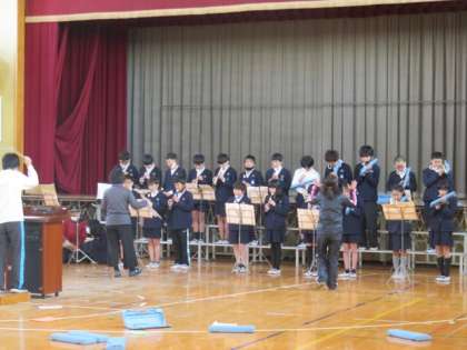 6年生、合奏の練習をしています。