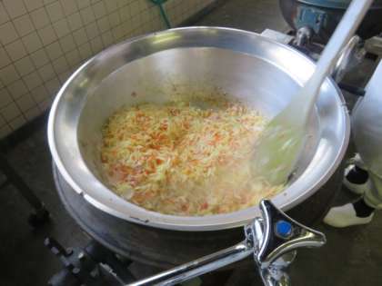 本校は250食以上の給食を朝から調理員さんお二人だけで調理されています。