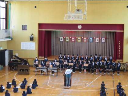 「キセキ」という曲で、みんなと出会えたキセキ、一緒に過ごせたキセキについて合奏で表現しました。さすが6年生、という上手できれいな音でした。