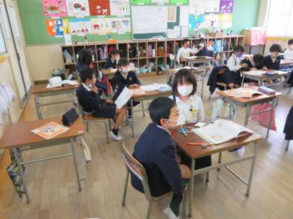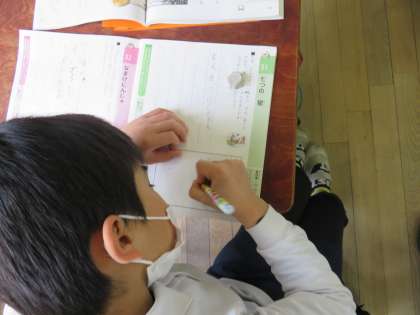 自分たちの心の中にあるうつくしい心(ダイヤモンド)を見つけようという問いについては普段の生活に重ねて、「電車で席をゆずった。」「弟に大きい方のおかしを分けた。」「お母さんが熱を出していたので、ゲームをやめて皿洗いをした。」などたくさんの活発な意見がでました。