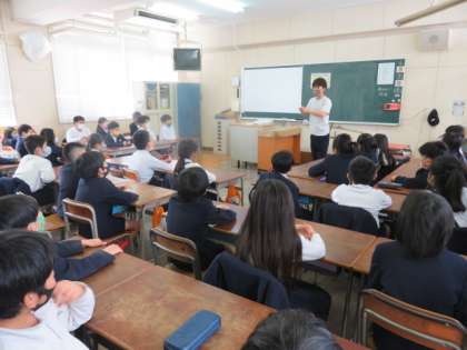 4年生は換気や手洗いに気をつけながら、座席をコの字型にして学習や学級活動を進めています。