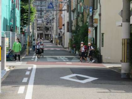 朝の時間は車や自転車の通行量が多く、スピードが出ていることもあります。