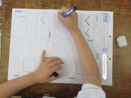 書写の時間です。いつものひらがな学習と違って、フェルトペンを使って練習しました。