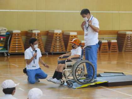 リハビリテーションセンターの方に来ていただき、出前授業「車いす体験」をしていただきました。