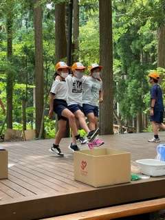 ステージを使って楽しむ子もいれば、落ちているゴミを集めて捨ててくれる子もいます。
