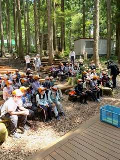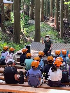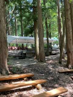 洗い場、かまど、作業場、全部森の中。木立の間で気持ちいいです。