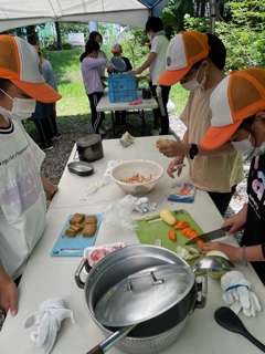 カレー、ご飯、かまどの係に分かれて始まりました。