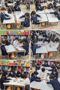 9月30日(木) 2年生三角形を切って 公開日 2021/09/30 更新日 2021/09/30 2年生 三角形を切ってノートに貼っていました。 「三角形が増えたよ。」 「あかちゃん三角形!」 「へんな四角。」 三角形を一本の直線で切りますが、様々な切り方があり、切り方によっていろいろな形になりました。 友だちのノートと比べている様子も見られました。 いいね(0)
