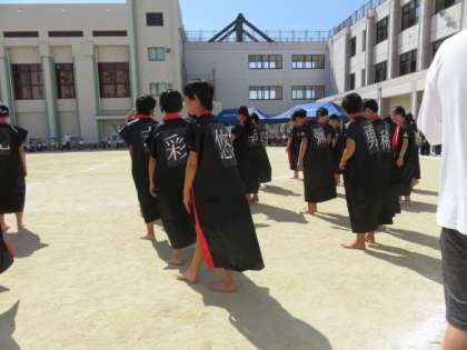 ハッピを着て、背中に名前の文字を入れています。とてもかっこいいです。