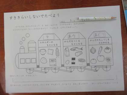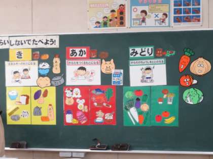 食品を赤、黄、緑に分けてどんな栄養があるのか学びました。