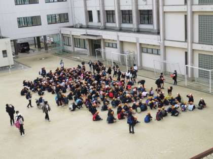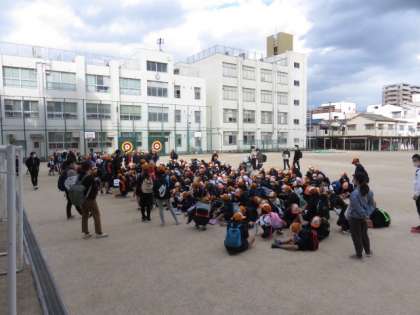 つかれた様子の子どももいましたが、上級生が下級生の手を引いて帰る様子や「もうちょっとで学校やで。」「がんばれ!」と励ましている姿もありました。