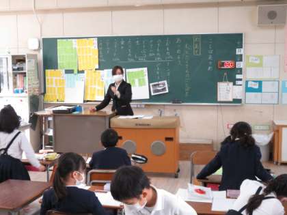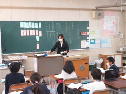 子どもたちが考えたことばを組み合わせて、文章作りをしていました。