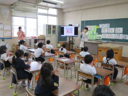 手洗いの点検やハンカチを毎日持ってきているかを確認します。