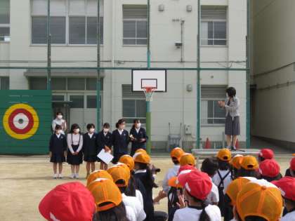 今日は全校朝会がありました。まずは5月3日と5日に行われたキックベースボール大会の表彰式がありました。校長先生から賞状や優勝カップを受け取るときは少し恥ずかしそうに見えましたが、マスクの下はとびきりの笑顔だったことでしょう。