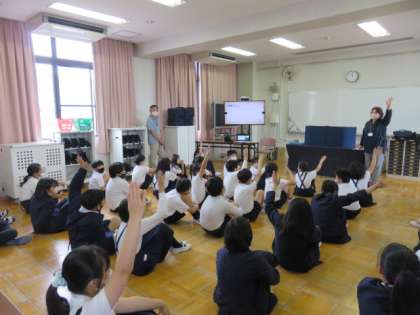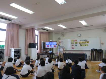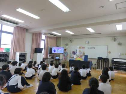 クイズやペープサートなどを通して万引き・いじめ・SNSなどの犯罪について詳しくお話ししてくださり、子どもたちも真剣に話を聞いていました。
