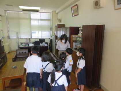 始まる前は「うまく説明できるかな」「ドキドキする」と緊張した様子でしたが、学校探検を終えると「楽しかった」「1年生がちゃんと話を聞いてくれて嬉しかった」「1年生と仲良くなれた」と達成感に満ち溢れ、笑顔いっぱいでした。お気に入りの場所の紹介も、とても上手にできました。