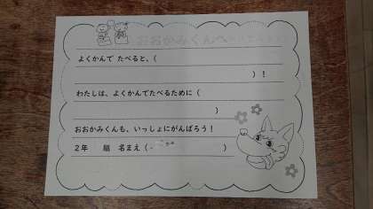 栄養指導 公開日 2022/10/07 更新日 2022/10/07 2年生 2年生で栄養指導がありました。 「よくかんでたべよう」について学習しました。よくかんで食べると 1)歯やあごが強くなる 2)味がよくわかる 3)お腹のはたらきを助ける 4)虫歯を防ぐ 5)頭のはたらきをよくする 6)食べすぎを防ぐ という効果があるそうです。目標は1口30回!!!がんばって噛んでみましょう! いいね(0)