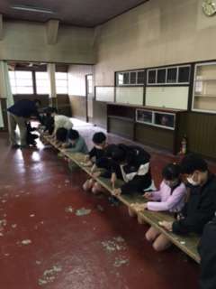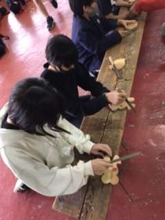 雨のため、魚つかみの代わりに焼杉細工を行いました。
