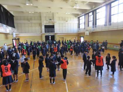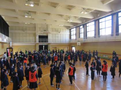 最初は縦わり班ごとに集まり、1年間お世話になった6年生へ寄せ書きをプレゼントしました。一人ずつのお礼の言葉を聞き、寄せ書きをもらった6年生はとても嬉しそうでした。