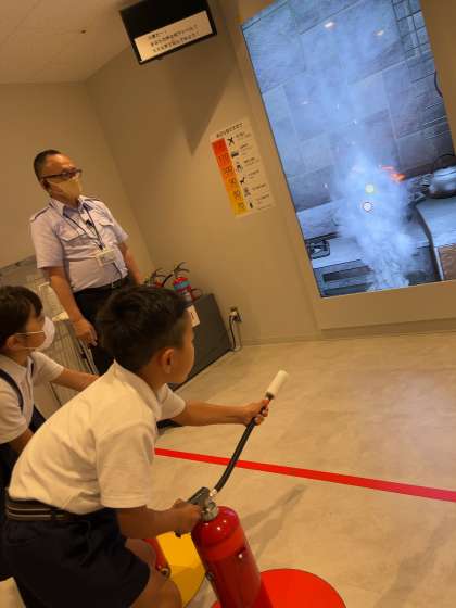 阿倍野タスカルでは、消化器の使い方、火災の時の避難の仕方、地震が来た時の避難の仕方や震度の違いを体験しました。自分ごととして考え、体験することができました。