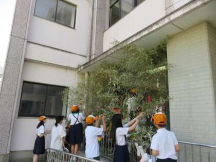「泉尾北小学校のみんなが笑顔で過ごせますように。」など、それぞれの願いを短冊に書き、飾りました。