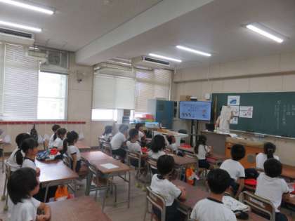発育測定の前に、「暑い日に気をつけること」について保健指導を行いました。
