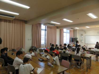 6年生が中心となり、班のみんなの意見を聞いたりまとめたりしながら、とても上手に話し合いを進めていました。