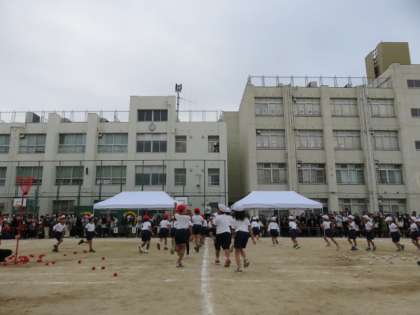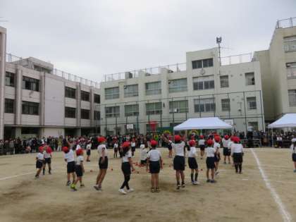 運動会 1・2年生 団体競技「かごまで とどけ」